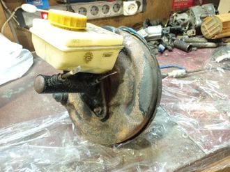 ВУТ (вакуумный усилитель) и ГТЦ (главный тормозной цилиндр) Lucas с проставкой-переходником на Москвич 2141 Святогор. Б,у в рабочем состоянии. Внешний вид может быть довольно ржавый т.к. деталям по 20 лет и редко владельцы автомобилей их восстанавливают.