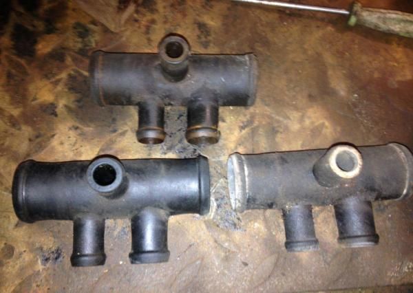 Пластиковые б/у пятерники и тройники системы охлаждения Москвича с двигателем Рено F3R.